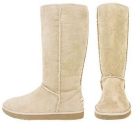 These boots are available on Alloy.com. They are lined with faux fur, and the outside is faux suede. These boots are a bit expensive ... but much cheaper than Uggs, and just as cute!