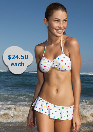 Dots are very hot this summer, and so is this great bandeau suit from Delias.