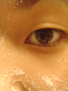 5) Before you apply it on your face, girls, if you have bangs, be sure to pin them away from your face. You do not want the honey in your hair! Apply the mixture on your face. Make sure to avoid the eye area and make sure not to get it up your nose. Sounds hard, but it's obvious not to put stuff up in your nostrils. You do not want to breathe this in.