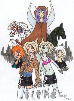 Tithe: A Modern Faerie Tale is the story of a sixteen year old pixie switched at birth for a human child - "changelings", as they call them, glamored at birth to look as human as they don't really feel. She goes by the name Kaye Fierch, and travels with one of her mother's numerous rock bands from city to city as a "modern nomad". When no choice remains but to return home to her grandmother's house in New Jersey, after what may not be such an accident, things unfold as the truth is revealed. When Roiben, a dark Unseelie knight, is thrown in by chance, Kaye soon becomes the pawn in a struggle she had more to do with than she'd ever thought. With help (or not so much) along the way from her friends Corny, Janet, Spike, and Lutie-Loo, her life is twisted into something that is completely foreign and familiar all the same.