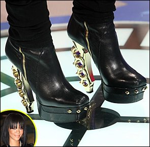 Rihanna always keeps up with the latest in the fashion world, but she makes sure to add a signature piece to everything she wears, like the gold pistol necklace she wore with a Herve Leger dress to the 2007 BET Awards. Another memorable piece of fashion worn by the young starlet would have to be the Dsquared2 black leather boots with a gold set of brass knuckle heels she wore during a taping of BET's 106 & Park. Not many people would be able to pull that off, but of course Rihanna can. Or, how about the hot pink dress she wore to the MTV Awards in 2007? That dress received a lot of buzz on the hotlist that week. Any other person would have looked like a walking bottle of Pepto Bismol, but she looked stunning.