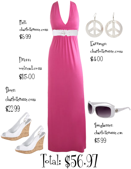Long maxi dresses are so 'in' right now! The dress was a little plain and lifeless, so adding the belt gives it a little more flavor! Pair this with white wedges and you've got yourself a cute summer outfit! You could also wear white gladiator flats with this, and it would be just as cute!