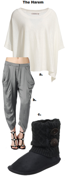 b. Harem Trouser (Steel) is available for $120 at Rich & Skinny.